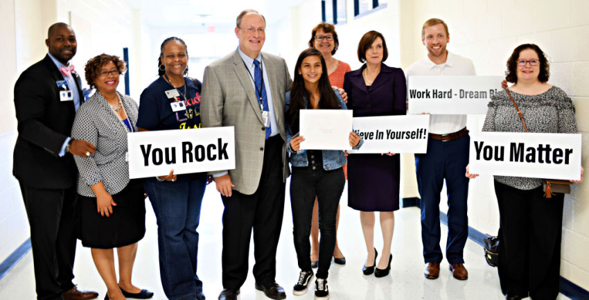 One by one, eight students spanning across four of Fayette’s middle schools were surprised in their classrooms with the news. The students are Carolin Perez-Lozada and Tohidul Islam of Bennett’s Mill Middle; Kya Martin and Katie Johnson of Rising Starr Middle; Skylar Moss, Alexandria Meadows and Alyssa Davis of J.C. Booth Middle; and America Espinosa of Flat Rock Middle.