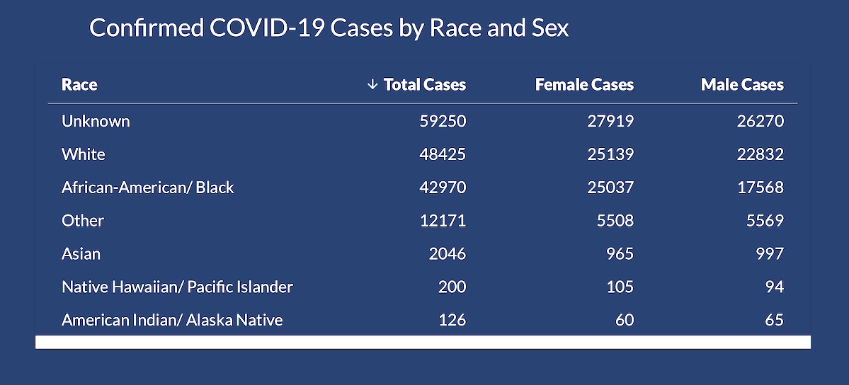 April 30 — 180 cumulative cases with 10 deaths; 33 hospitalizations.