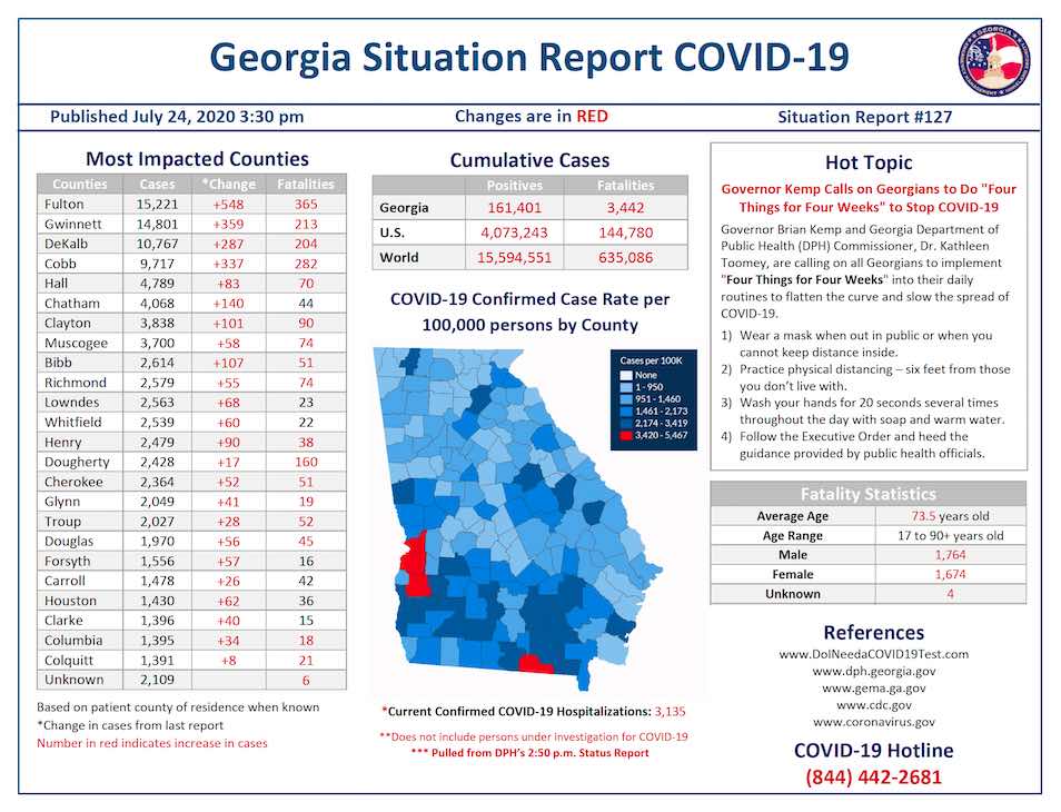 Here’s the Covid-19 pandemic report from the Georgia Department of Public Health as of 2:50 p.m., July 25.