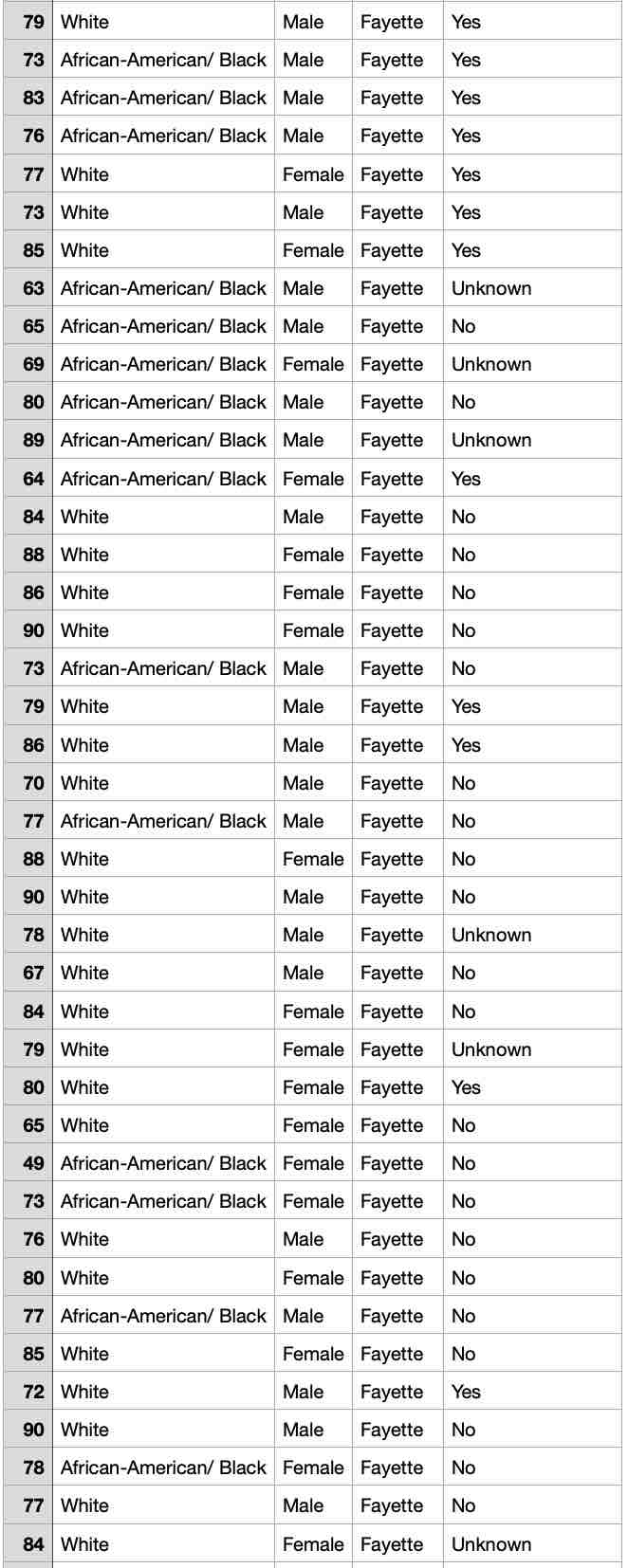 In Fayette, there have been no deaths of any Covid patients under the age of 49. Of the 41 fatalities in Fayette so far, only 7 have been under the age of 70, and only 1 under the age of 63.