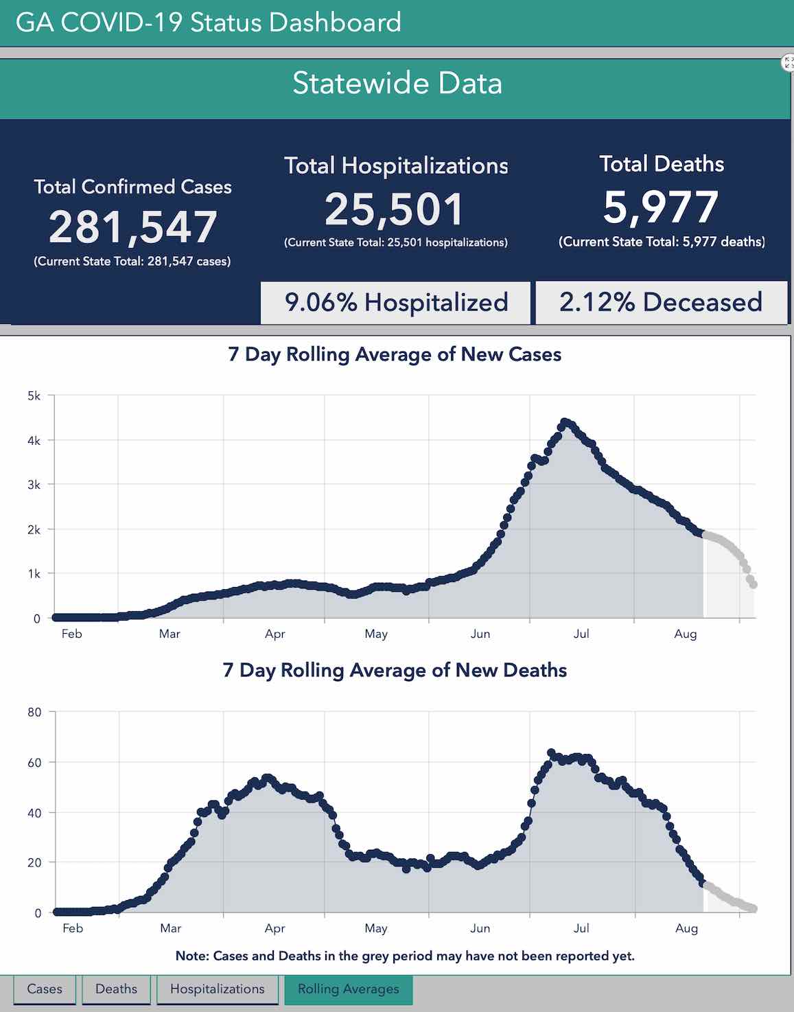 The graphs below are from the Georgia Covid-19 Data Hub.