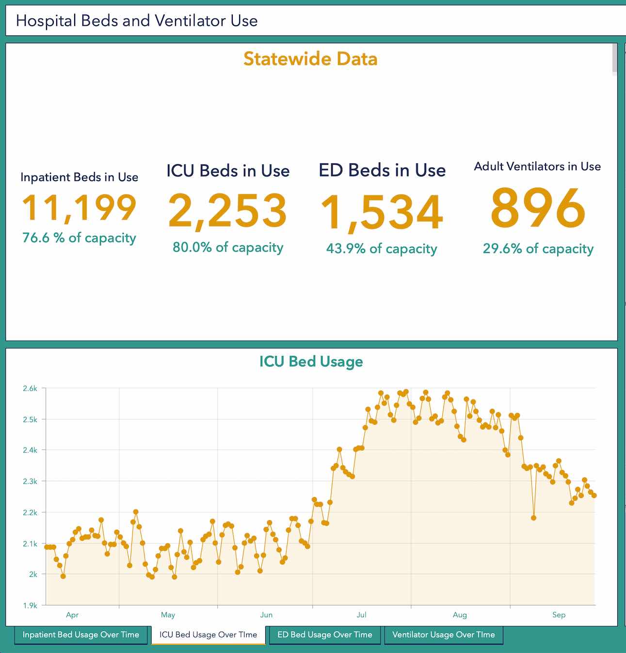 • Sept. 3 — 234 newly hospitalized patients; new statewide ICU admissions are 40.