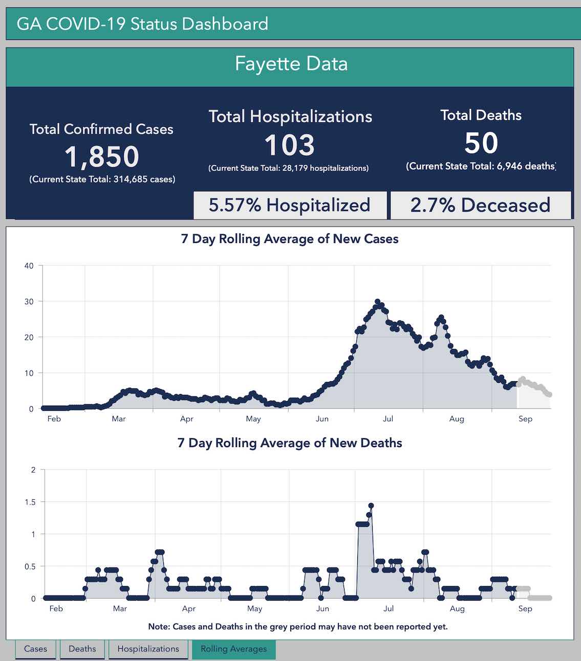 Below is a current DPH chart of reported Covid-19-related deaths that have occurred in Fayette County since the start of the pandemic — 50 deaths attributed to the coronavirus.