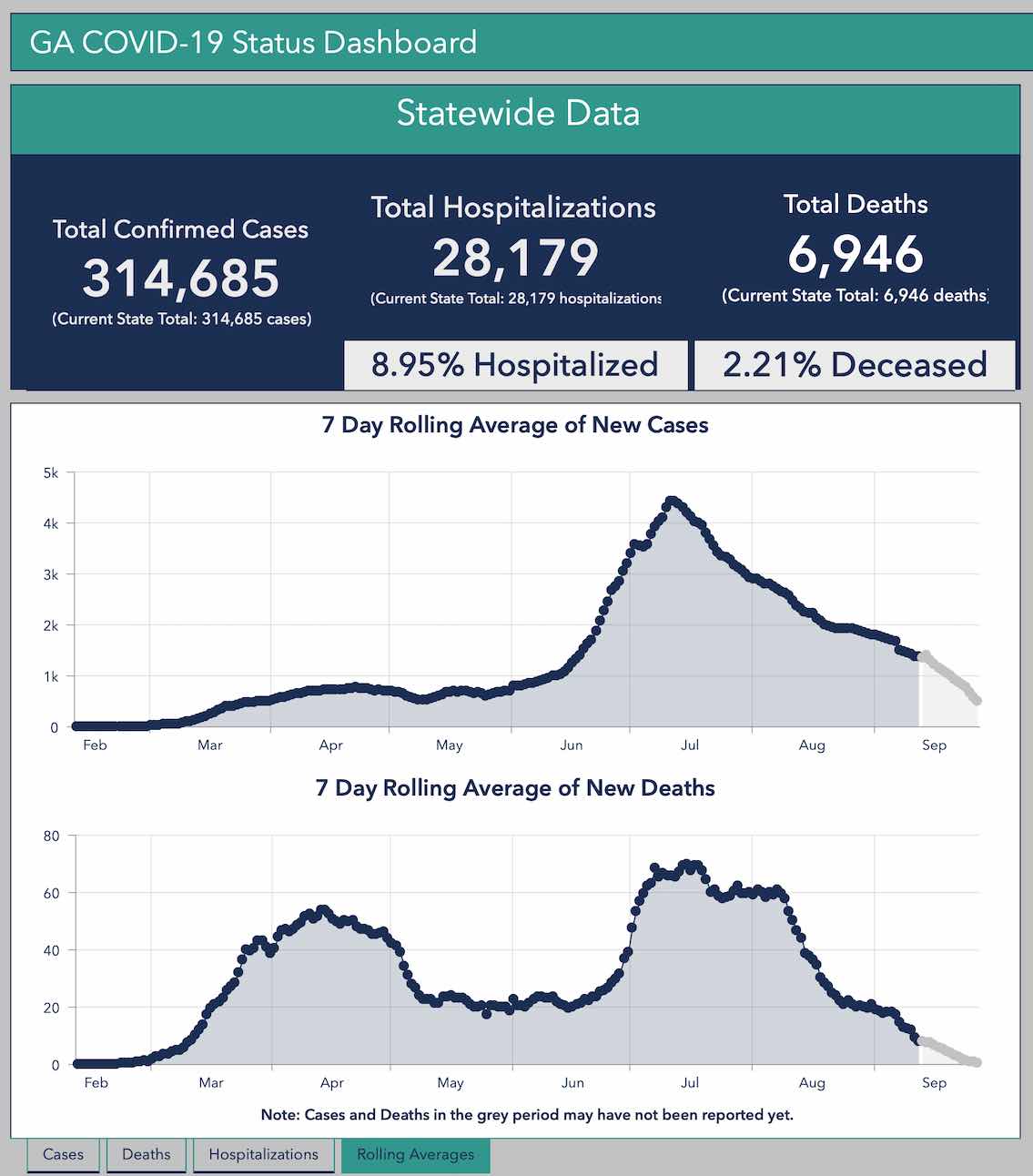 Here’s the Covid-19 pandemic report from the Georgia Department of Public Health as of 2:50 p.m., Sept. 27: