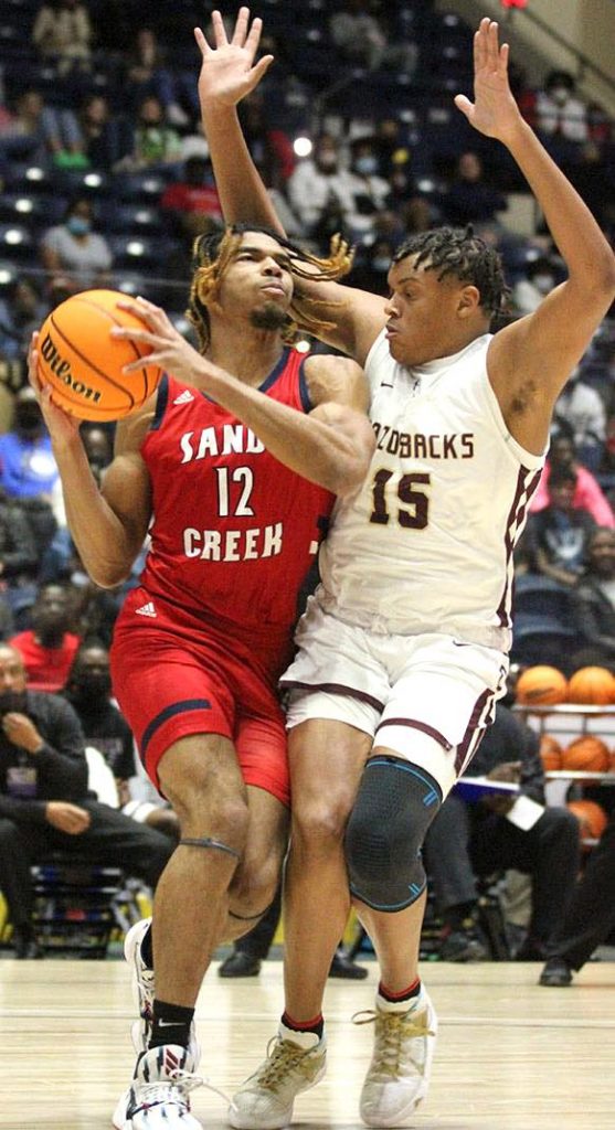 Both the Fayette County and Sandy Creek boys teams advanced to the state basketball championship in Macon, with the Tigers losing to Baldwin, 54-53, on March 10, and the Patriots falling to Cross Creek, 57-49, on March 12. Photos/Chris Dunn-Fayette County School System.