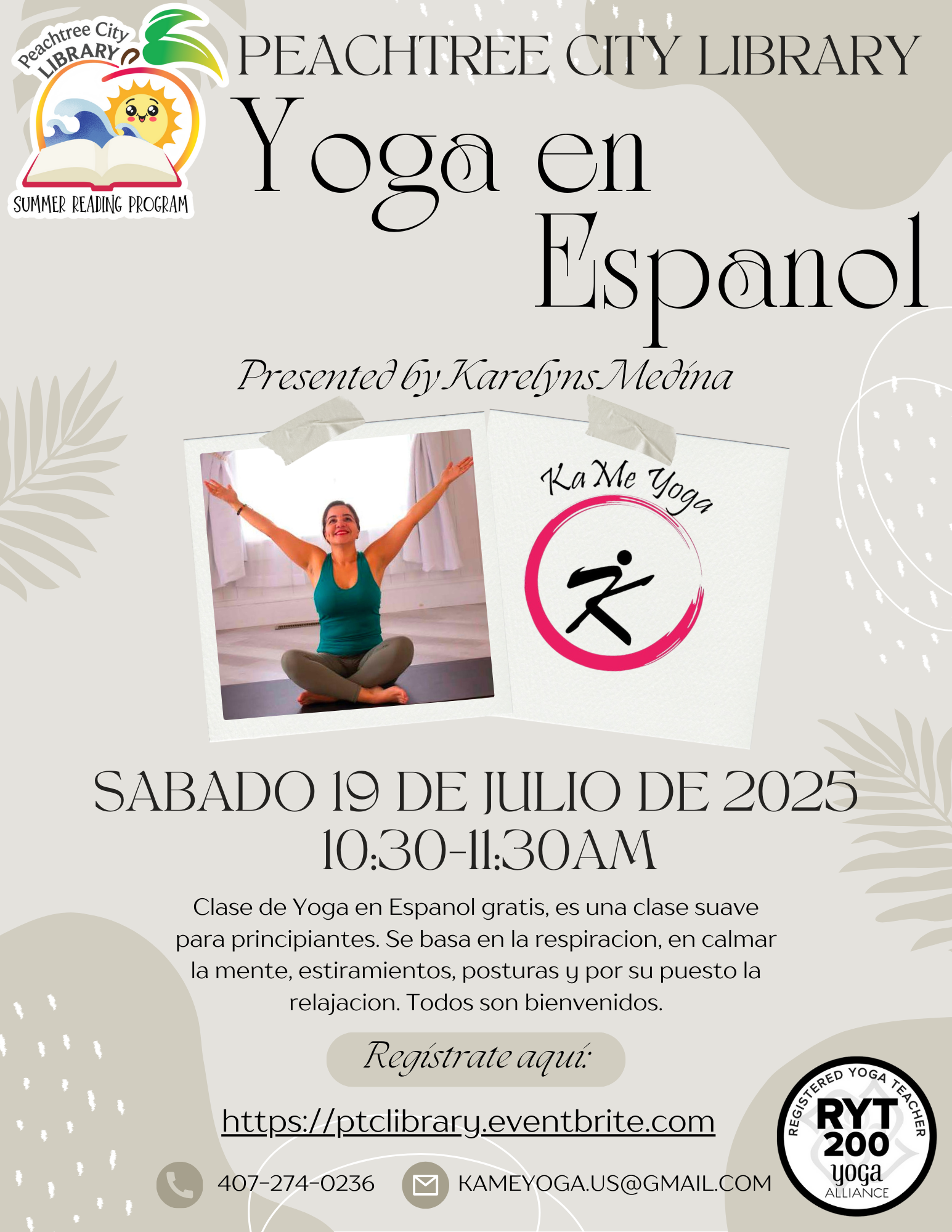 Clase de Yoga en Espanol gratis, es una clase suave para principiantes. Se basa en la respiracion, en calmar la mente, estiramientos, posturas y por su puesto la relajacion. Todos son bienvenidos. Free Yoga class conducted in Spanish, it is a gentle class for beginners. Everyone is welcome. This free event will be held on the lower level of the library in the Floy Farr Room. Registration is recommended, but not required.