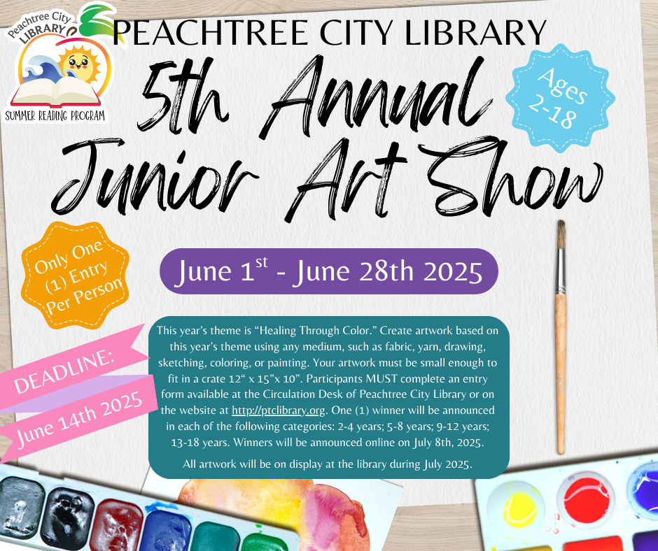 5th Annual Junior Art Show Submission Deadline: Saturday, June 14th, 2025 Peachtree City Library is sending out a call to […]